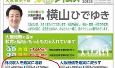 こんにちは。大石あきこ(大石晃子)です。いま、私の手元に、淀川区の維新府議・横山ひでゆき さんのビラがある。淀川区内で配布されている「よこやま通信 2019vol.1」。うーん、良さげなことが書いてあるなぁ。「よこやま通信 2019vol....