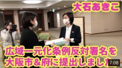 こんにちは。大石あきこです。今回はみなさんにぜひ協力していただきたい署名の案内です。大阪府と市は、この2・3月の議会で、カジノ(IR)誘致の「同意」決議を行おうとしています。IRは、収益の8割がカジノの売上であり、カジノそのものです。世論調...