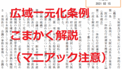 ブログ・活動報告これはヤバイ、大阪府市「広域一元化」条例。こまかく解説 こんにちは。大石あきこです。昨日、2021年2月17日に、いわゆる「広域一元化」条例について、現時点の案が大阪府HPで公表されました。大阪府HP()2月17日に条例案が公表されたばかりなのに、大阪府が条例骨子のパブリックコメント(意見募集)... 2021.02.18ブログ・活動報告