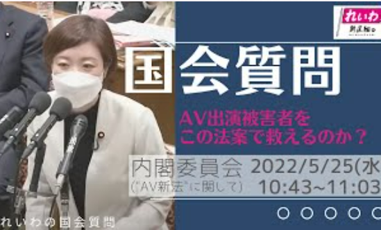 大石 このように、AVに関しては年齢制限に特化した個別法がなかったから立法化に至らなかったというようなことをおっしゃっていると思うんですけれども、数年あったということで、これは非常に大きな問題で、みんなでばたばたして超党派で作ったということですから、なぜ自民党や公明党、与党の方々がこれを数年かけて放置していたのか、個別法がなかったからというのが問題になるのかというのは非常におかしな話で、まずそこを追及するべきではないのかなというふうに思うんですね。