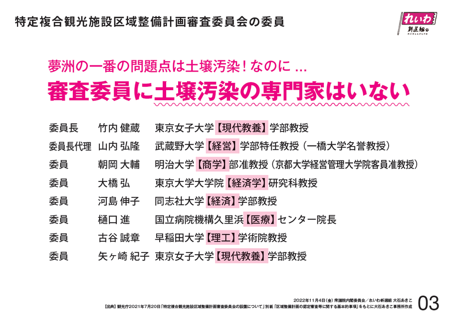 カジノ計画の審査をする国交省も、土壌の問題は、審査基準であり、自治体財政にも関わるために重視すると言っているんです。