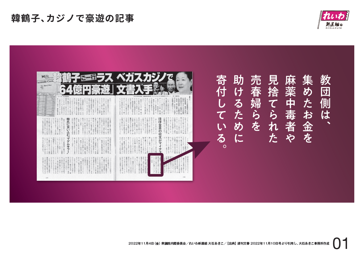 大石 れいわ新選組、大石あきこです。IR、カジノの問題について質問します。まず、パネルの一と言いたいところなんですけれども、