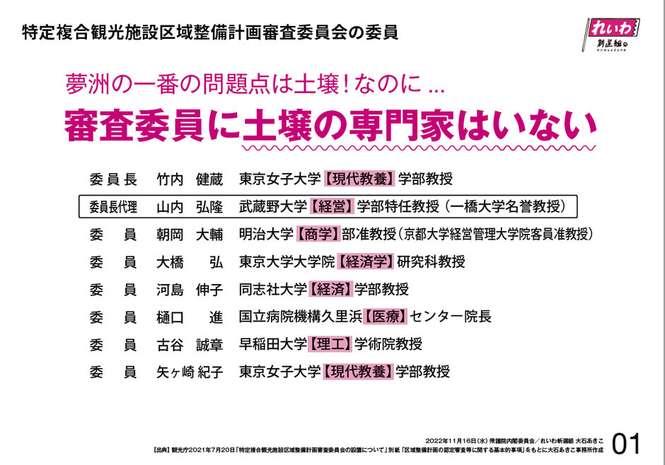 (2022/11/16 追記:この「有識者」は誰なのか、いつ選定したのか等、委員会終了後に求めています。)