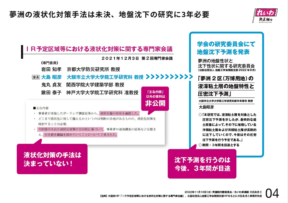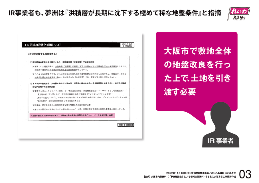 そして、この先生だけではなくて、IR事業者すら軟弱地盤を問題視していることをお示しします。