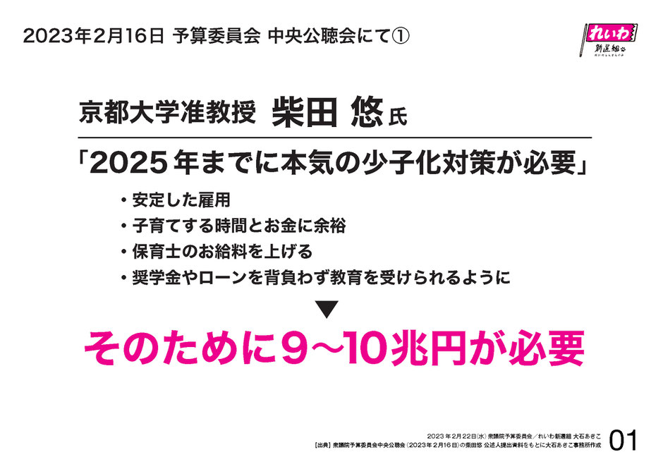 先日、2月16日、予算委員会中央公聴会で、公述人として京都大学の柴田准教授が、