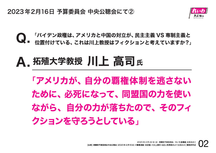 大石 2月16日、中央公聴会での、拓殖大学の川上教授に私の方が質問をしました。