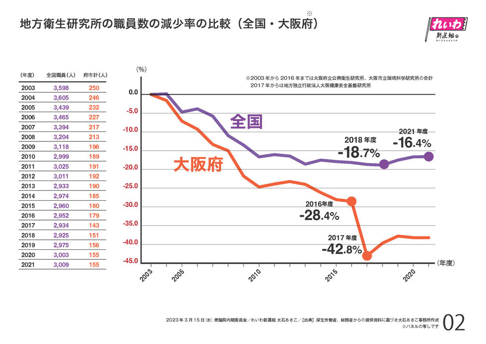 そして、私は今、地方衛生研究所で、コロの検査分析とか追跡調査、そういう領域の分野での人員削減のことを説明しましたけれども、