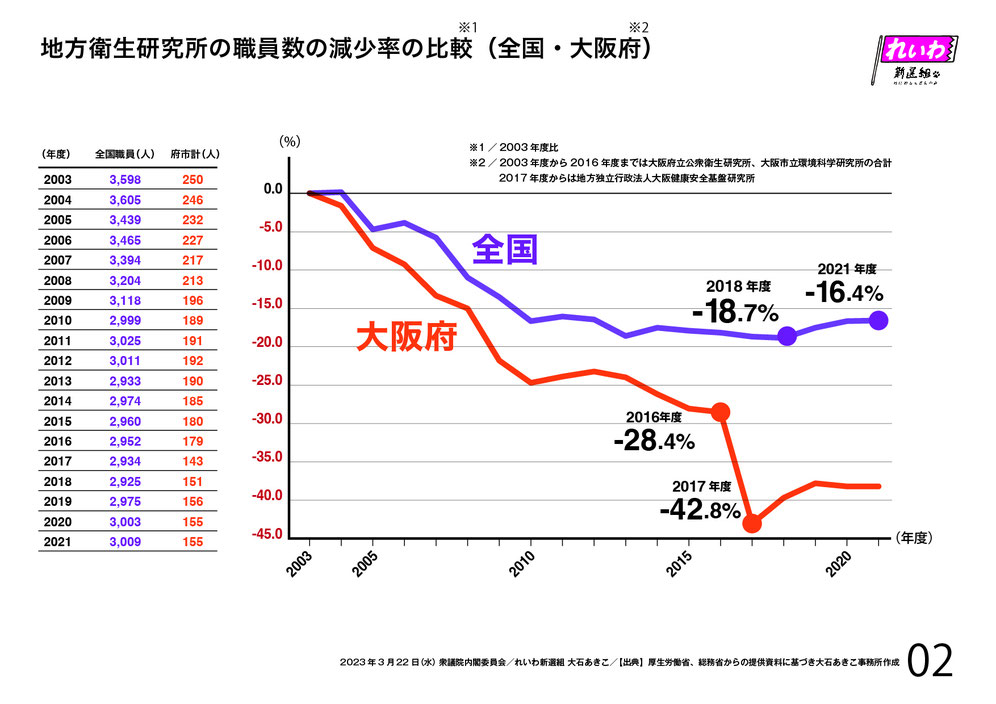 地方衛生研究所の職員が減ってきました、大阪では更に減っていますよ、これを許すんですか、