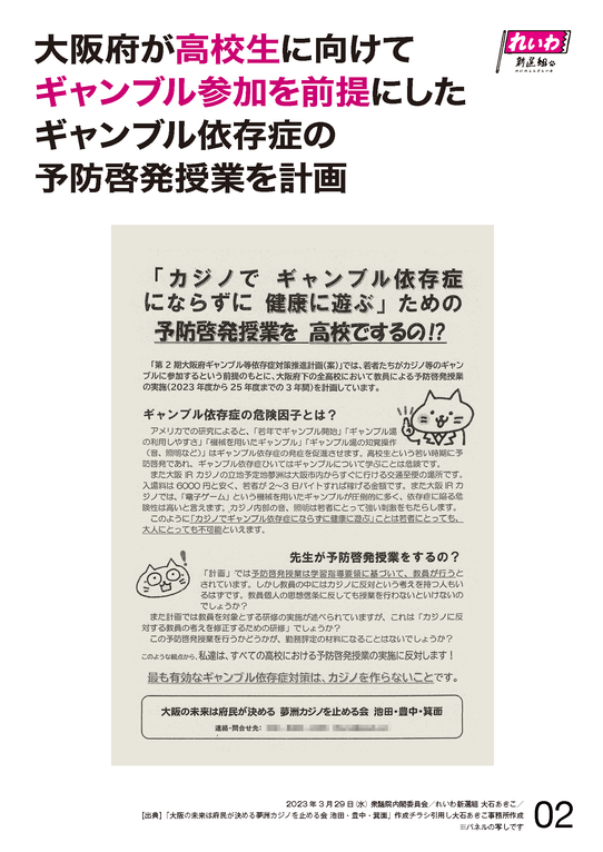 その下でギャンブル参加を前提とした健康に遊ぶという予防啓発授業をやるということに困惑が広がっている。