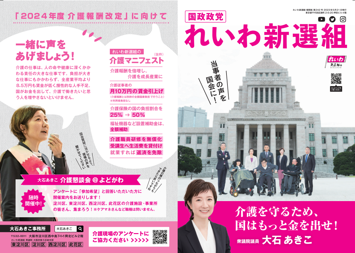大石あきこが勝ち取りたいものの1つ 介護現場の賃上げ!