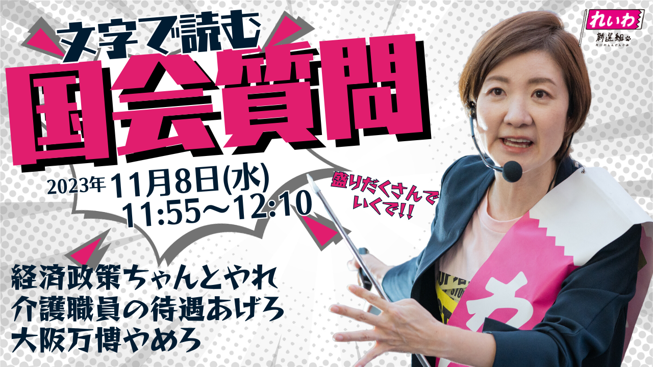 まず最初に、今も行われているイスラエルによるガザの虐殺を日本政府が許していることに抗議します。既にガザの死者は1万人を超え、4,000人以上の子どもが殺されたと言われています。先日、上川外務大臣がわざわざイスラエルを訪問し、支持を表明、そして本日はブリンケン米国務長官に、イスラエル、パレスチナ間に対する米国の外交姿勢を支持。アメリカが虐殺のための軍事支援をしている、それをやめるように言うべきところに、どうかしていますよ。また、沖縄でも、米軍基地のために、沖縄県民を踏みにじって、国による代執行をしようとしている。どっちを向いた政治をしているんですか。代執行は許されません。