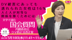 内閣委員会2023年5月10日【内閣委員会】DV防止法改正案 審議 2023年5月10日【内閣委員会】で、小倉大臣に『DV防止法改正案~必要なことは女性の雇用改善』について追及しました。====大西委員長質疑に入るに先立ち、大石委員に申し上げます。大石委員におかれましては、度々質疑時間を超過しておりますので... 2023.05.10内閣委員会国会報告