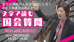 国会報告2023年5月29日【決算行政監視委員会】再審法改正を求めます 2023年5月29日【決算行監視委員会】で、法務大臣に『再審法改正』について追及しました。====江田委員長次に、大石あきこ君。大石れいわ新選組、大石あきこです。まず、通告した3番目の質問からいたします。法務大臣にお伺いします。全ての国民の... 2023.05.29国会報告決算行政監視委員会