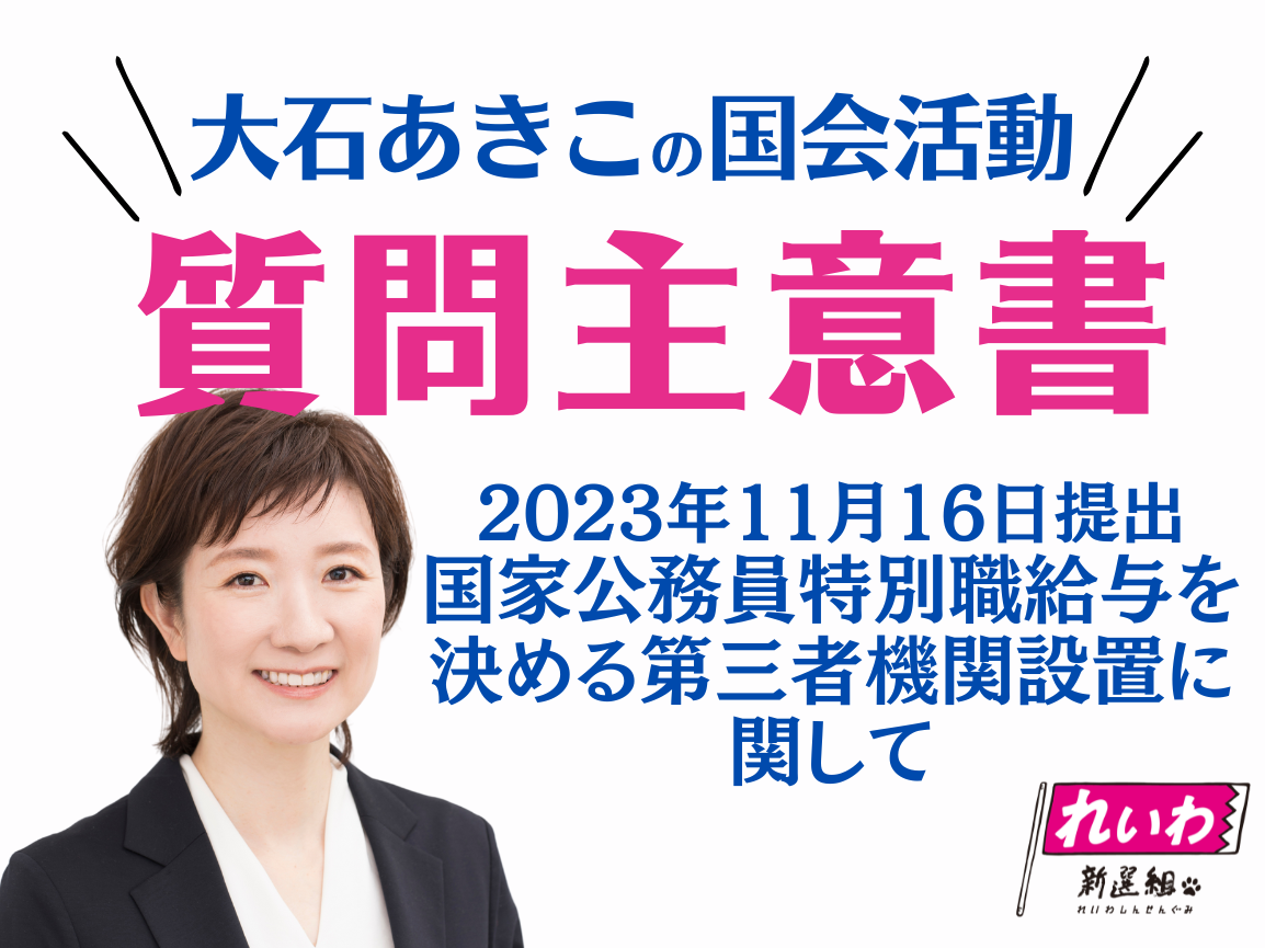 衆議院議員大石あきこ君提出国家公務員特別職給与を決める第三者機関設置に関する質問に対する答弁書 (shugiin.go.jp)