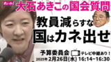 2025年4月23日【文部科学委員会】給特法に関して、あべ文科大臣に質問しました。