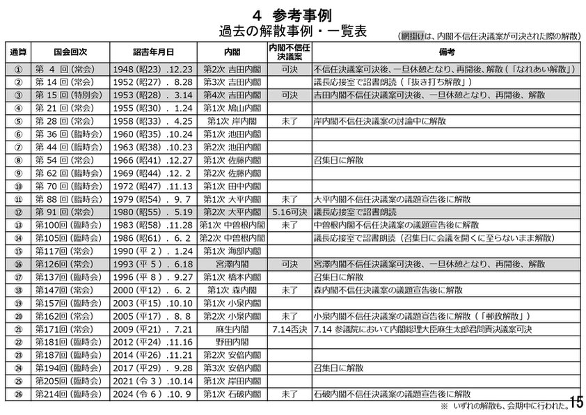 そんなのはやっちゃいけなくて、法制局が本日お配りになった15ページ目の資料の解散一覧においても、直近だけで見てもひどい解散をやっているわけではないですか、今日も幾つか出されたと思うんですけれどもね。