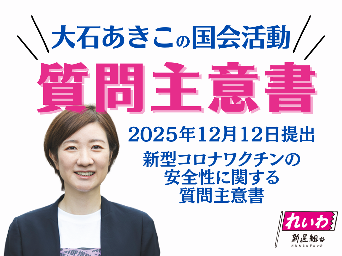 2025年12月12日に、 新型コロナワクチンの安全性に関する質問主意書を提出しました。