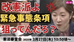 国会報告2025年3月27日【憲法審査会】改憲派よ 緊急事態条項狙ってんだろ? 2025年3月27日【憲法審査会】参議院の緊急集会について国民・維新・自民に質問しました。本来、憲法審査会は1巡(1人7分間)発言をしてから、質問された委員が答える流れです。今回は、複数人に質問しましたので、分かりやすく紹介するため1巡目の... 2025.03.27国会報告憲法審査会