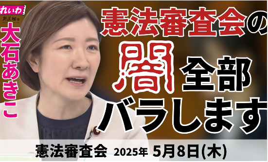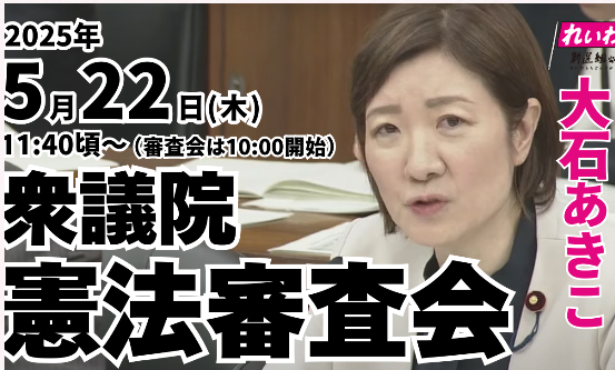 国会報告2025年5月22日【大石あきこ・憲法審査会】参考人質疑 2025年5月22日【憲法審査会】参考人にネットの適正利用、特にフェイクニュース対策について伺いました。青字でブログ掲載にあたっての補足を記載します。==== (動画1:40:49~)枝野会長 次に、大石あきこさん。大石 れいわ新選組、大石... 2025.05.22国会報告憲法審査会