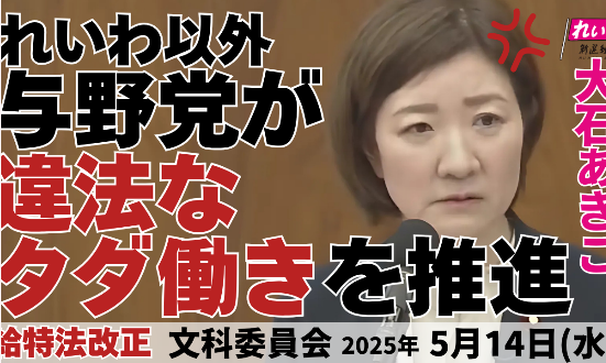 国会報告2025年5月14日【大石あきこ・文科委員会】れいわ以外 与野党が違法なタダ働きを推進 2025年5月14日【文部科学委員会】給特法に関して、最後の質問と修正案に対する反対討論を行いました。※赤字はブログ掲載にあたっての補足です。====委員長 次に、大石あきこ君。大石れいわ新選組、大石あきこです。給特法の改正の修正案について... 2025.05.14国会報告文科委員会