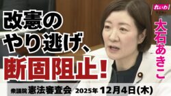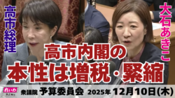 予算委員会2025年12月10日【衆議院 予算委員会】高市内閣の本性は増税・緊縮、学校の労基法違反、再審法の改正 枝野委員長 休憩前に引き続き会議を開きます。質疑を続行いたします。大石あきこさん。大石 れいわ新選組、大石あきこです。高市総理、税収が過去最高だ、80兆円を超えたということですが、やはり庶民から取り過ぎやということで、その最たるものである消... 2025.12.12予算委員会国会報告