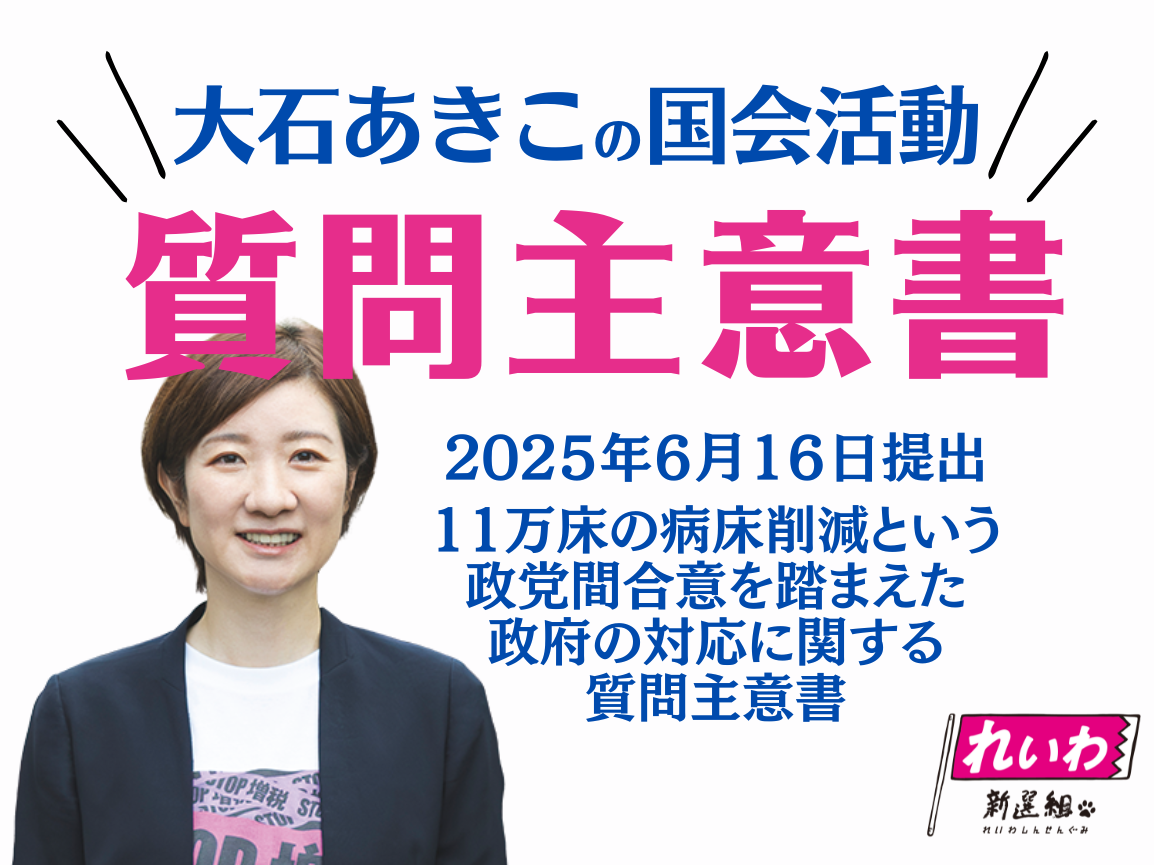2024年6月16日に、11万床の病床削減という政党間合意を踏まえた政府の対応に関する質問主意書を提出しました。