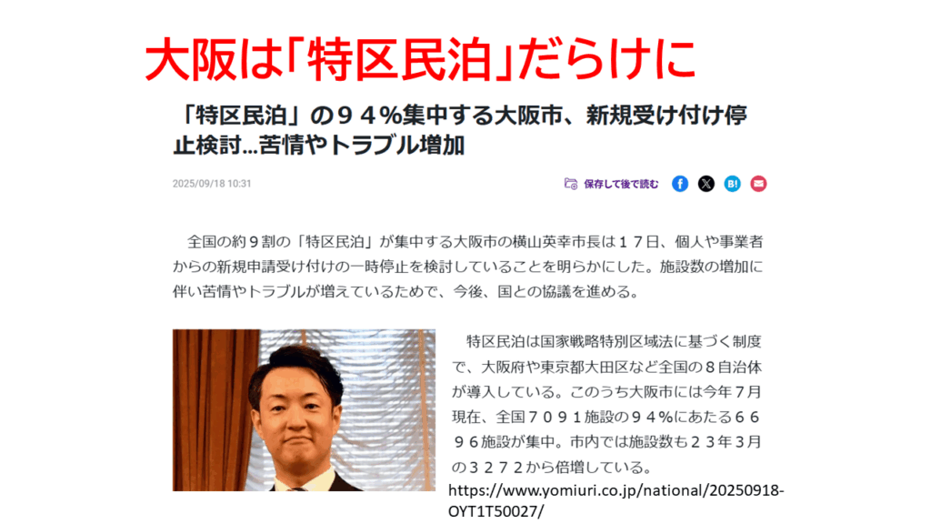 全国の約9割の6,696もの「特区民泊」が大阪に集中しています。