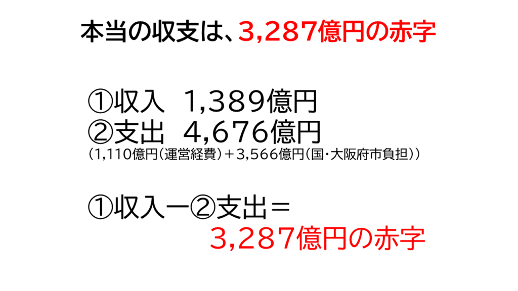 計算し直しますと、今の、数字でまとめますと、収入は1,889億円なんですけども、支出は4,676円ということで、差し引すると3,287億円の赤字であったということです。