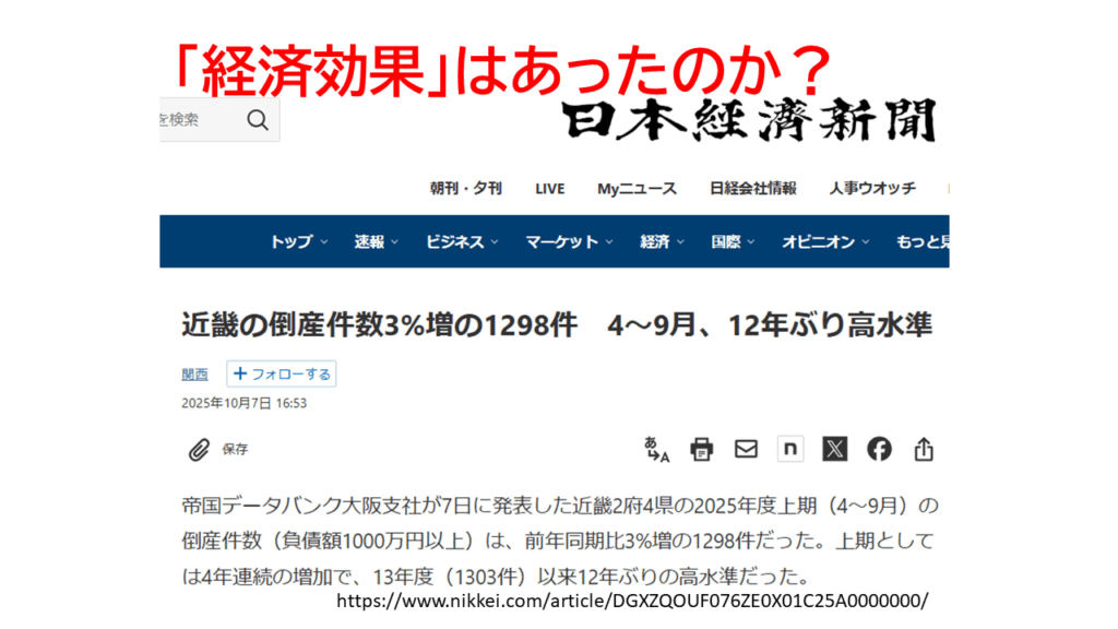 ちょうど、万博開会中の2025年度上期(4~9月)の倒産件数が1,298件で、4年連続の増加で、12年ぶりの高水準だった。