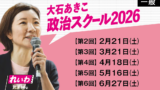 この政治スクールでは、大石あきこが社会運動で何を学んだのか、政治家になってからどんなことを経験したのかなど、全6回でお話しします。