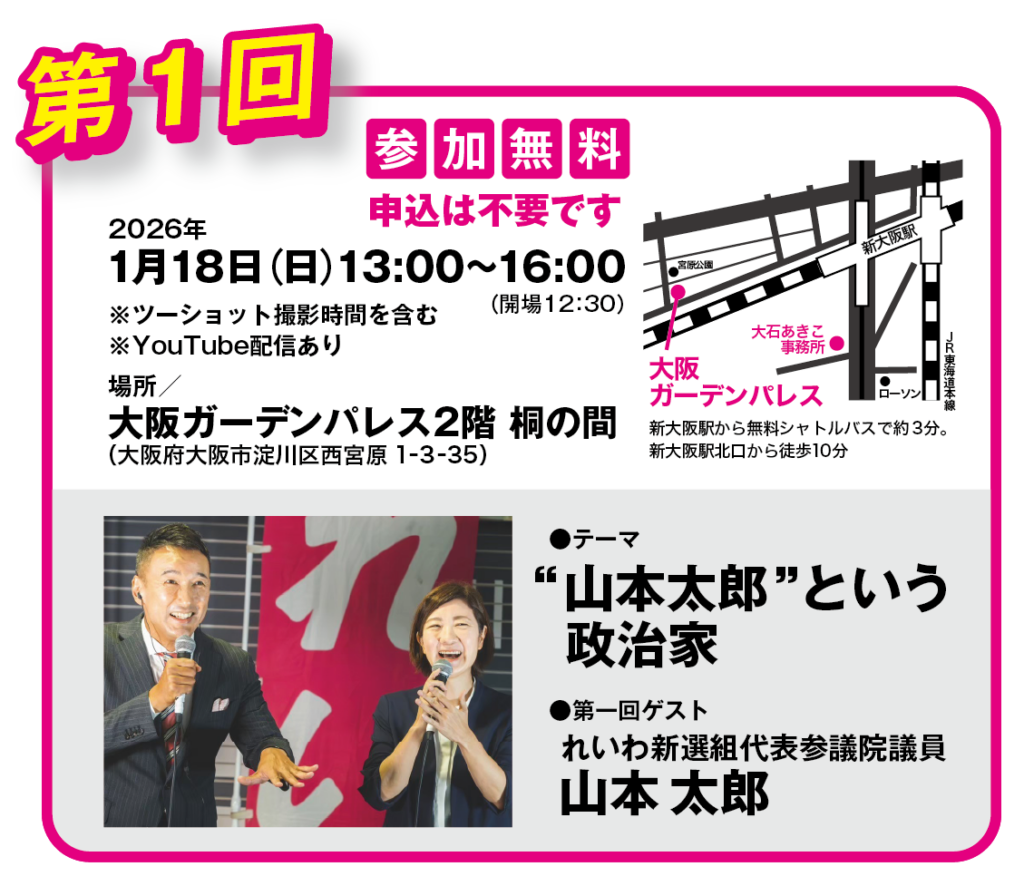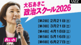 ※政治スクールは大阪市内で開催予定です。大阪市内まで遠い方、全回参加できるか不明な方はこちらをご利用ください。